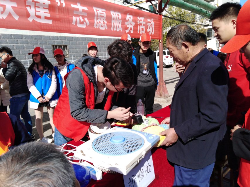 早上7点,我们全体学生会成员准时到场,按部就班准备工作。每个人都热情如火,干劲十足,搬桌子,椅子,搭帐篷,搬电脑等等,把自己所分配的任务认真耐心的完成。在活动一开始就吸引了大量居民前来询问,维修人员耐心讲解,一一作答。秋高气爽,维修成员们豪情万丈,对损坏电器认真检测、拆卸及安装。维修员人们都忙的不亦乐乎,他们在各自的战场上,挥洒着热情、倾注着努力。当看到居民们从自己手中接过修好的电器并感激时,成员们脸上挂着欣慰的笑容。一天下来,维修队接收的电脑、电扇、台灯、插排、耳机等电器多达数件,整个维修过程中,没有出现无主物品和因维修而导致损坏的物品,物品维修成功率高达90%以上,高效的完成了义务维修活动,并得到居民的一致认可。其扎实的技术和良好的服务态度受到同学们的一致认可。理论与实践相结合,提高动手能力,增长社会经验,促进综合素质的发展。义务维修使我进一步认识到知识与实践操作能力同样重要。义务维修不仅使我们将平时在学校所学的书本知识进一步深化,还增加了实际操作能力,使理论转化为实践技能,深入贯彻了学以致用的理念与思想。通过维修家用电器也找到了自己所学的专业知识和实际操作能力方面还有欠缺,充分认识到知识的重要性。