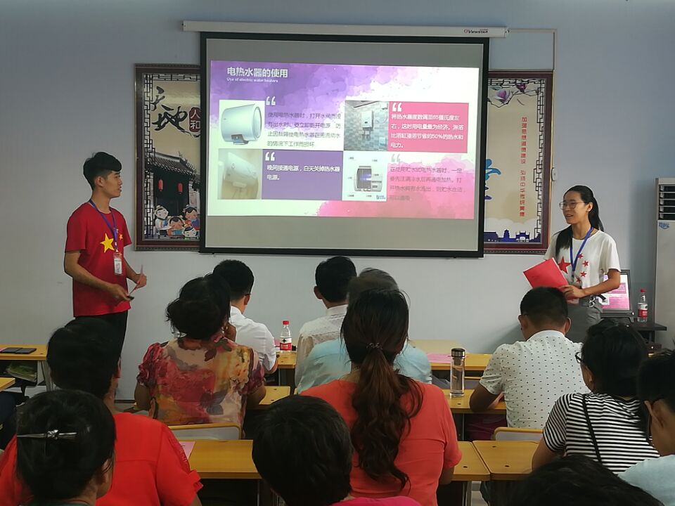 此次安全用电知识宣讲吸引了40余名付庄社区居民,两位志愿者作为此次宣讲的主讲人。志愿者们先从家用电器的使用方法开始引入主题,分别强调了电风扇、电饭锅、插排和电热水器等常见家用电器使用时的注意事项。紧接着,又介绍了有关雷电的知识以及雷电来临时的注意事项。随后,志愿者介绍了触电时的自救与急救措施,通过图片和文字声情并茂地向居民们介绍了急救方法。最后,志愿者跟居民们分享了一些节电的小窍门。宣讲结束后,居民们积极提问,志愿者们耐心回答。俏皮的解说,使得会议室中不时传出愉快的笑声,掌声阵阵,现场氛围达到高潮,此次活动获得了社区居民的一致好评。