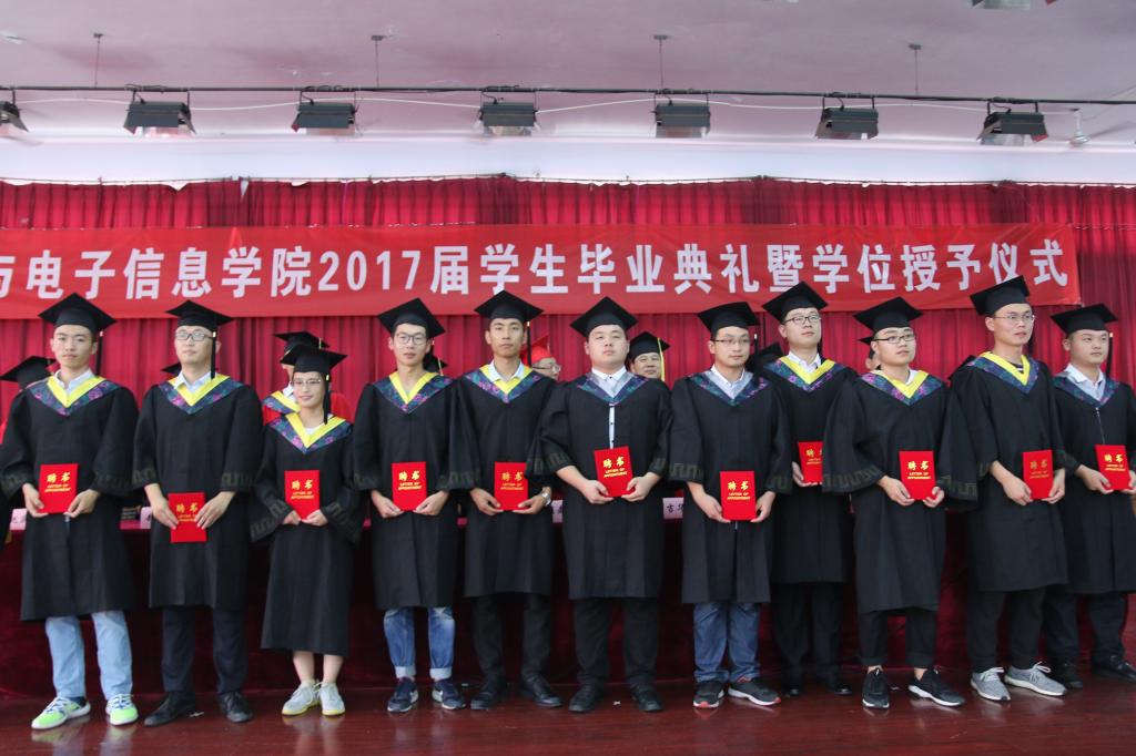 毕业典礼在雄壮的国歌声中拉开了序幕。滚球买球的app官网党总支副书记冯琨宣读了授予学士学位的决定,随后,院领导为2013级全体本科毕业生颁发学士学位证书。而后,党总支副书记宣读了授予2014级电子信息工程技术专业毕业证书的决定。