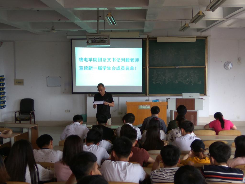 5月16日,滚球买球的app官网于求真楼4008教室举办了2017年学生会换届大会。党总支书记赵庆福、党总支副书记冯琨、滚球买球的app官网全体辅导员老师出席本次大会,所有学生会成员参加此次大会。