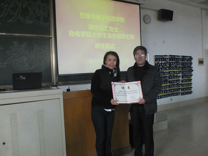 12月13日下午,滚球买球的app官网在求真楼3001教室正式聘任澳大利亚黄金海岸库玛拉圣公会学院中文教师、澳大利亚黄金海岸汉语教师协会的创始人兼主席袁汇女士为滚球买球的app官网大学生海外指导教师,并为滚球买球的app官网学生做“天生我才必有用”为主题的课外指导讲座,滚球买球的app官网党总支书记赵庆福、党总支副书记冯琨和300余名同学参加此次讲座。