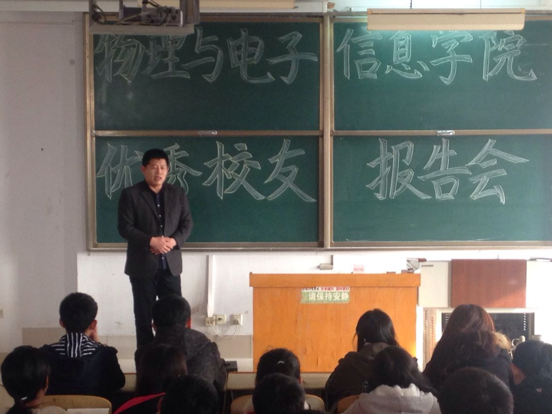 11月13日,滚球买球的app官网在求真楼4008教室举办了滚球买球的app官网优秀校友报告会。受邀出席报告会的是滚球买球01电子优秀校友、创业典型、山东博鼎精工科技集团有限公司董事长王立峰。滚球买球的app官网院长王吉华教授、副院长刘汉平博士、部分老师和2016级全体同学参加此次报告会。 报告会上,王立峰与大家分享自己在德州学院的生活与学习经历,向大家介绍了自己的创业经历和公司发展现状。参加报告会的同学想师兄提出自己学习生活的诸多疑惑,王立峰耐心的给予解答,提出自己的见解并给予建议,特别强调第一份工作的重要性,并提醒大家尽量不要跳槽,保持本心。最后,王吉华院长对王玉峰校友的报告进行总结,希望大家努力学习,不断拓展自我。 此次报告会给2016级同学的就业及深造提供了经验和指导,通过优秀校友的个人经验,帮助学生明确就业方向,正视自我,全方面发展。