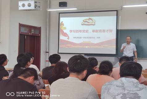 为贯彻习近平总书记党史学习要求,立足提升学生党员的党性修养,滚球买球的app官网党总支开展“支部书记讲党课”活动, 6月21日下午,于明理楼0215教室滚球买球的app官网第一学生党支部书记刘毅老师讲授“学习百年党史,奉献青春才智”主题党课。滚球买球的app官网全体毕业生党员到场聆听。