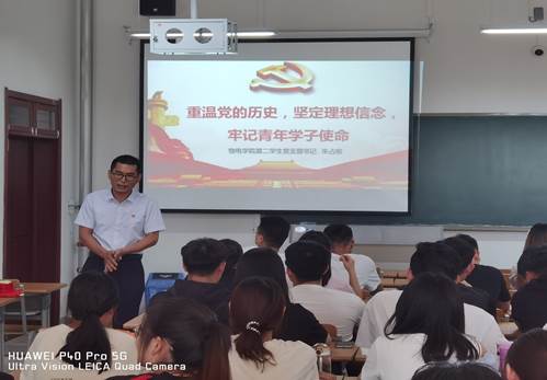 为贯彻习近平总书记党史学习要求,立足提升学生党员的党性修养,滚球买球的app官网党总支开展“支部书记讲党课”活动,2021年6月18日下午,第二学生党支部书记朱占收老师为全体学生党员和入党积极分子上了一堂生动的党史专题辅导课。