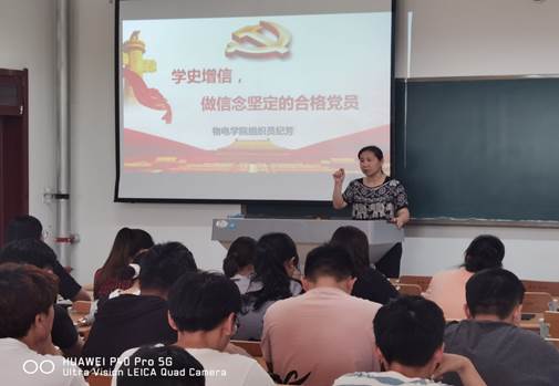 今年是中国共产党成立100周年。百年征程波澜壮阔,百年初心历久弥坚。为推动学院党史学习教育入脑入心,见行见效,教育引导全院新发展党员学史明理、学史增信、学史崇德、学史力行,滚球买球的app官网于2021年6月15日下午在明理楼0215教室开展了讲专题党课活动。学院组织员纪芳老师以“学史增信,做信念坚定的合格党员”为主题,从“为什么要学习党史” “坚定理想信念,做一名合格的共产党员”两个方面,为41名2021年第二批新发展党员讲授了一堂思想深刻、富有实践指导意义的专题党课。