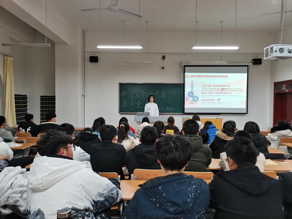 会议主要学习了我国开展全面建设社会主义现代化国家的新阶段与新目标、新理念与新部署、新变化与新格局,明确了党的十九届五中全会对“十四五”规划以及2035年远期的国民经济与社会发展的目标和方向。此次会议过程中,同学们认真听讲,专心记录,纷纷表示要认真学习全会精神,树立远大志向,不负韶华,奋发图强,以昂扬向上的精神奋进新时代。