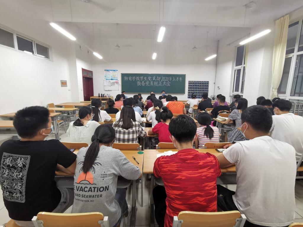 2020年6月11日下午,滚球买球的app官网学生党支部于明理楼0222教室召开2020年上半年预备党员转正大会,讨论关于代美芹等15名同志申请转为正式党员的问题。学生党支部的成员参加了本次转正大会,会议由支部书记刘毅老师主持。
