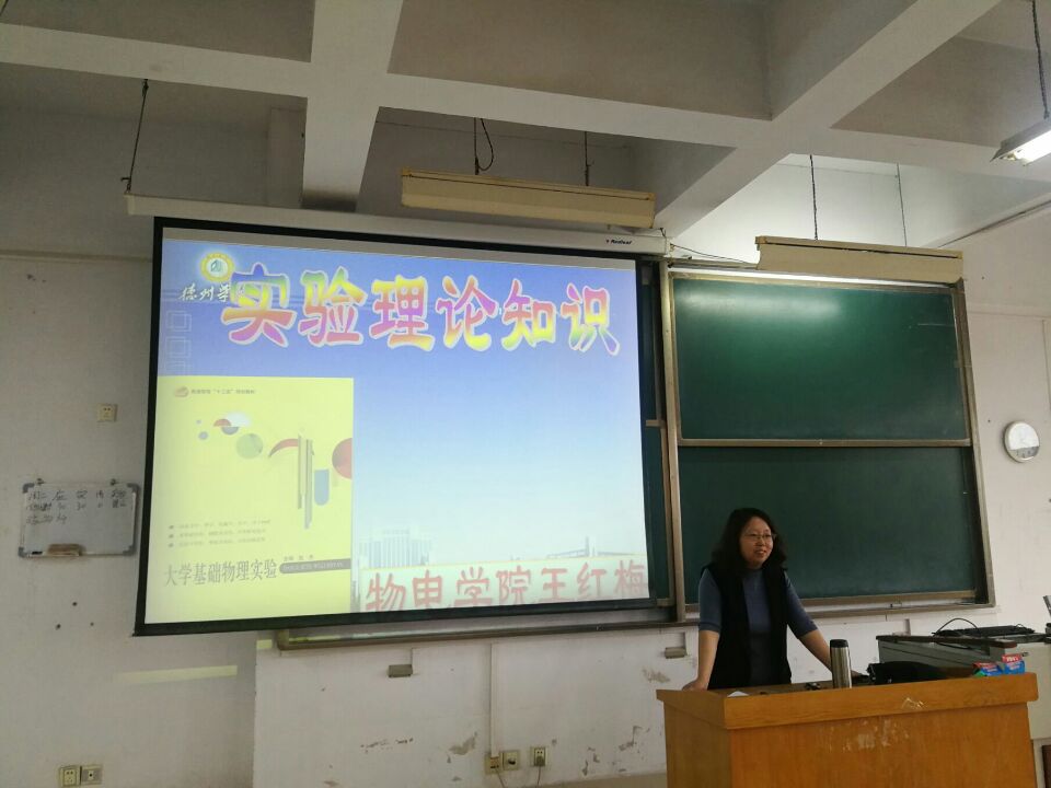 王红梅老师从三个部分进行讲解。一、物理实验课程的重要性。二、实验课的基本环节和基本规则。三、测量的不确定度及数据处理。王红梅老师强调:“我们要把理论和实验相结合,不断丰富实验的内涵,增强实验的功能,认真做好科学实验,事事严谨认真。”同学们都认真地听讲,专心地做着笔记。
