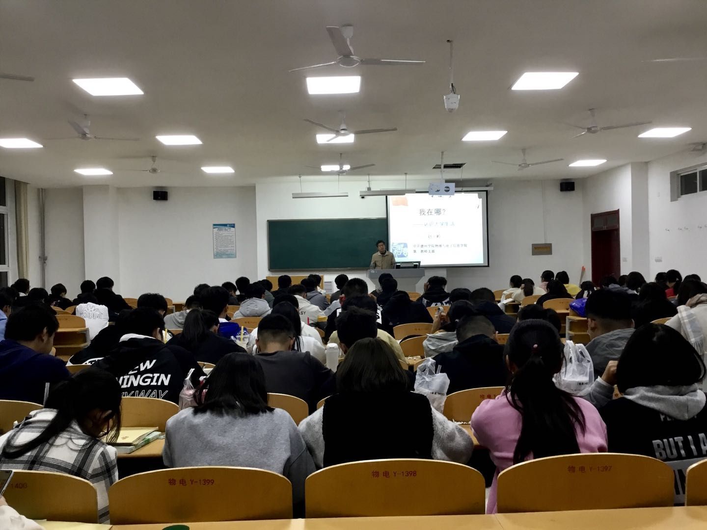 11月5日晚,为使我校新生尽快适应大学生活,以阳光心态面对未来人生,滚球买球的app官网举办的大学认知教育系列讲座之认识大学在明理楼0126举行,赵立岭老师主讲,物理班与电本班的全体新生聆听了此次讲座。
