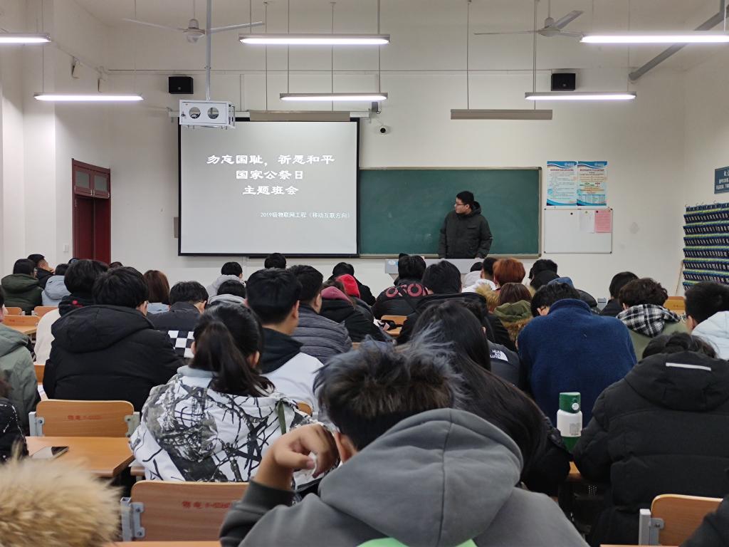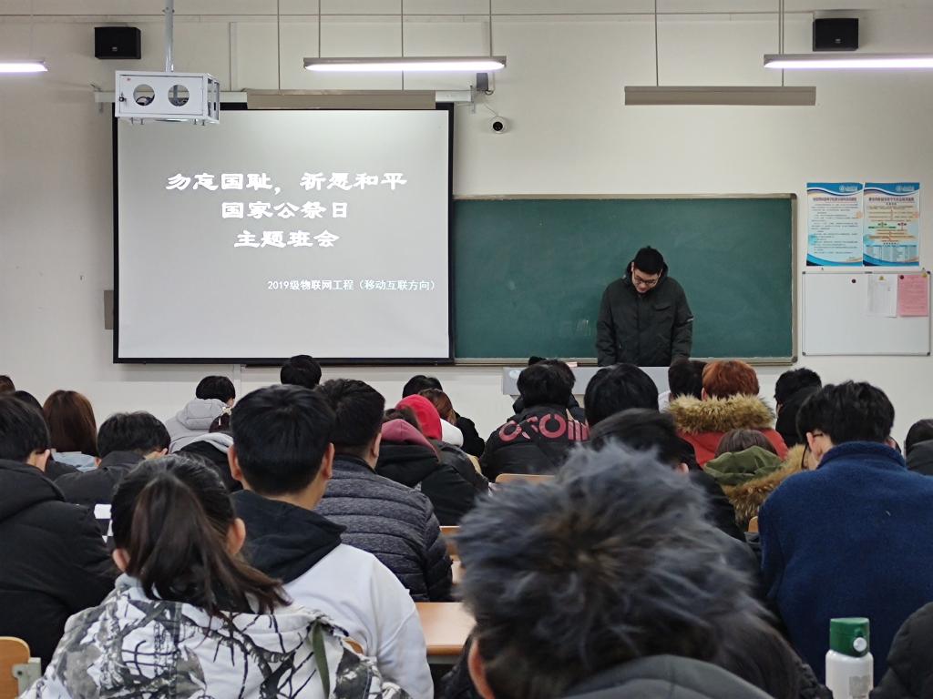 为引导同学们勿忘国耻,牢记历史,滚球买球的app官网于12月13日在全院范围召开以“国家公祭日”为主题的主题班会。本次班会由各班班长主持,各班全体同学参加了此次班会。
