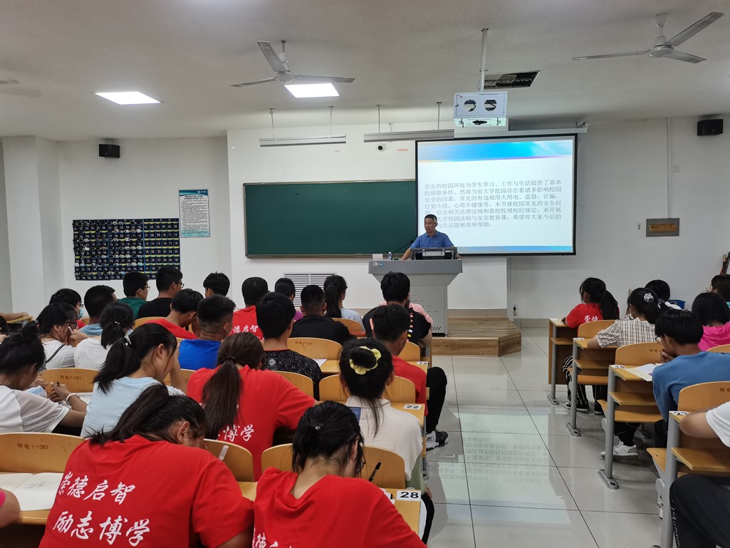讲座中,杨伟老师以校规校纪为基准,围绕校园及周边环境安全情况进行相关法律知识的普及。杨伟老师通过列举案例,向在场学生进行了用火用电,财产安全及人身安全等全方位、多角度的安全知识教育。最后,杨伟老师再次强调新生应遵守校规校纪,希望全体新生提高安全意识和安全技能。