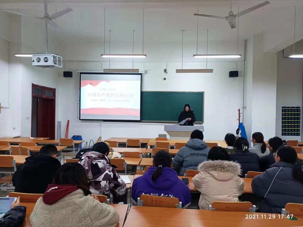 此次活动中,宣讲员高晓宇将其分为七个部分进行宣讲,分别是建党篇、大革命篇、土地革命战争篇、抗战篇、解放战争篇、建国篇和改革开放篇。本次活动以党的百年发展历程为顺序,以党的重大事件为线索,以不同时期的典型事例、历史人物、精彩故事为主干,全景式回顾了党的伟大历程和辉煌成就。同学们不但了解熟悉我党发展的光荣历史,更从中得到鼓舞,吸取力量。