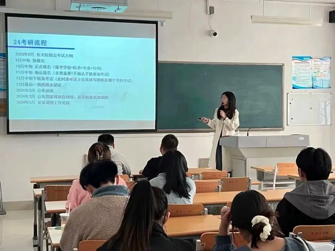 本次考研经验交流会对备战考研的学生了解考研趋势、确立考研目标、掌握备考方法、建立考研自信、科学制定复习计划等方面具有积极意义,为学生考研之路的开启奠定了良好基础!