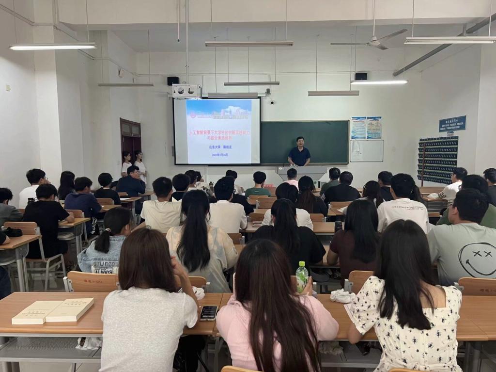陈教授的报告题目为《人工智能背景下大学生的创新实践能力与综合素质培养》。陈教授详细介绍了国内人工智能在多个行业、领域的发展过程及在大学生竞赛中的应用;为学生指出了人工智能最新的热点和未来的发展方向。