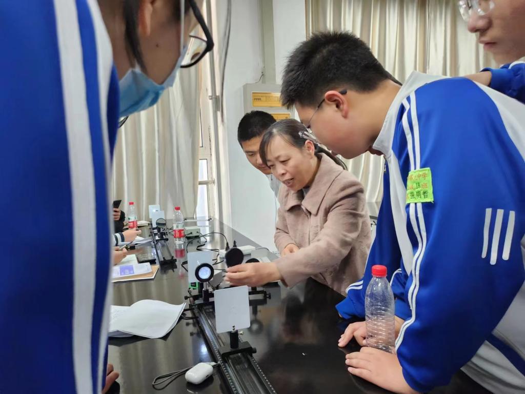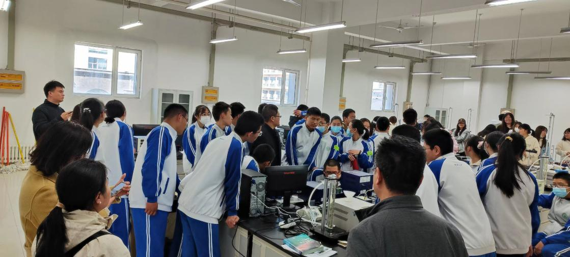 本次来参观的中学生共30余人,对于这次参观他们显得无比兴奋,对看到的仪器设备充满好奇。在近代物理实验室、光学实验室、大学物理实验室,同学们都驻足观看,聆听实验室负责老师的讲解,特别是对空气热机表现出很高的兴趣。在中学物理教法实验室,物理学专业的师范生作为志愿者,为九中的同学们展示了自己制作的多种物理仪器设备,同学们也跟随志愿者的讲解参与到实验中,围着志愿者提问自己感兴趣的问题,现场气氛融洽热烈。之后,九中的同学们还参观了学院电子设计、创新竞赛等实验室,观看自制的优秀竞赛作品。这些来访的中学生们每个人脸上都挂着收获知识的喜悦。