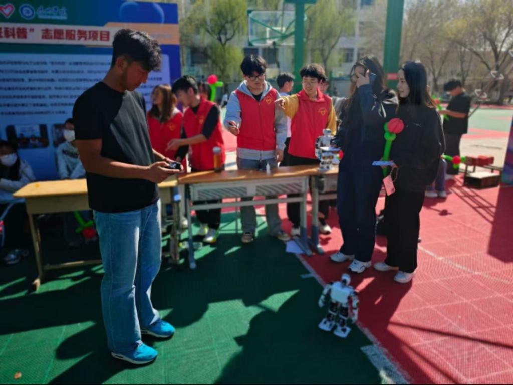 活动现场,滚球买球的app官网“星光”科普志愿服务队以“科技助公益”为主题,现场展示了智能机器人互动演示,吸引了众多师生驻足体验。机器人灵活的动作和志愿者们的趣味科普讲解,将科技与公益结合,传递了创新服务的理念。活动还巧妙融入志愿服务知识问答环节,增加了活动的趣味性,也激发了大家的参与热情,营造了浓厚的志愿服务氛围。