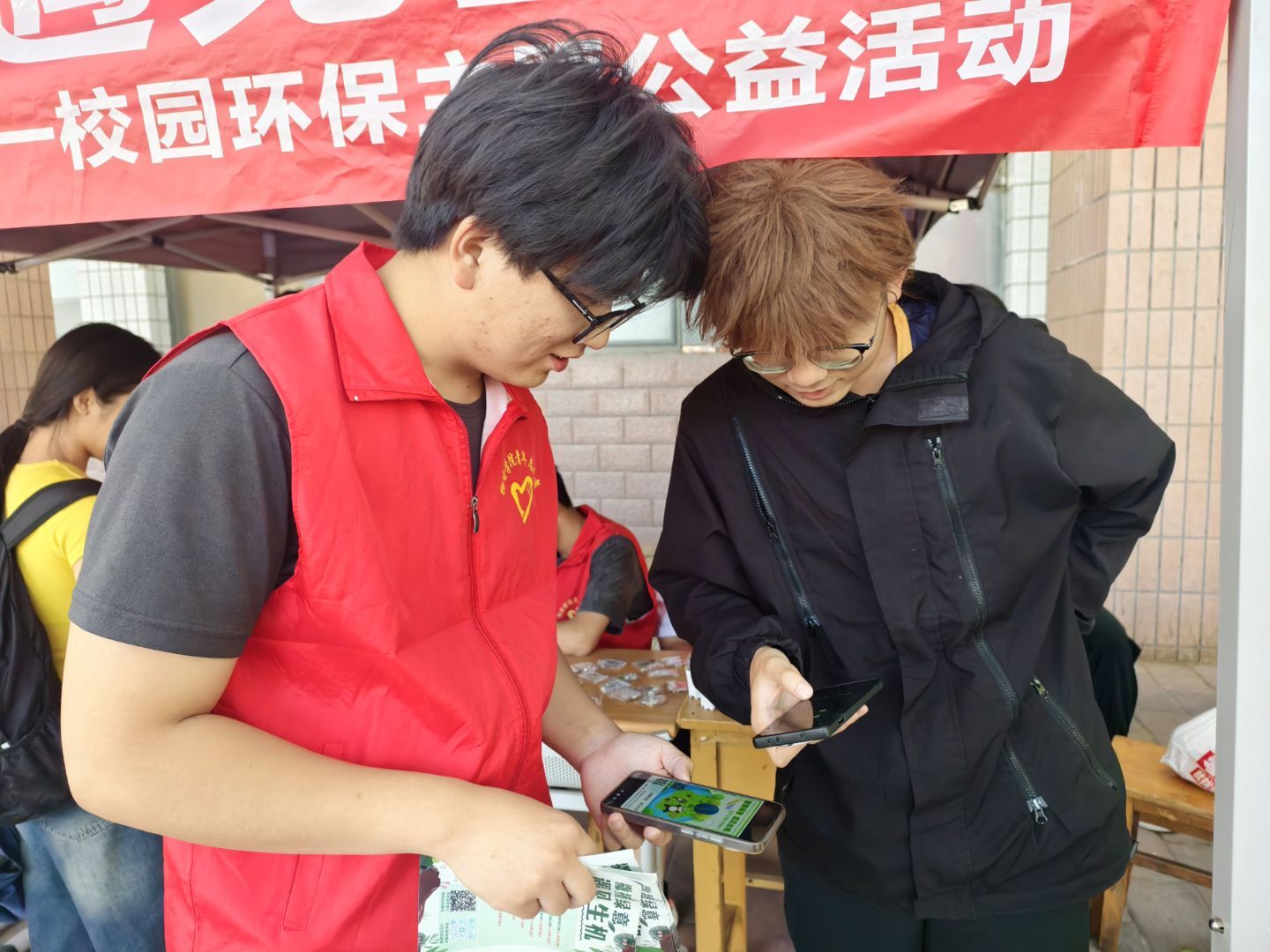 本次活动采用线上线下联动的创新形式,线上渠道打破场地与参与人数限制,通过开放投票充能通道,参与活动的同学们将自己制作的明信片、摄影作品上传参与投票;线下渠道在三餐门口搭建起活动展台,精心准备绿植等丰富多样的小礼品,吸引了众多同学前来了解活动详情。同时活动设置了有趣的互动环节,"环保知识大转盘"将碳中和、垃圾分类等知识融入趣味问答,"环保心愿卡"书写活动则让参与者用文字传递绿色承诺,极大的调动了同学们的积极性,现场气氛热烈非凡。