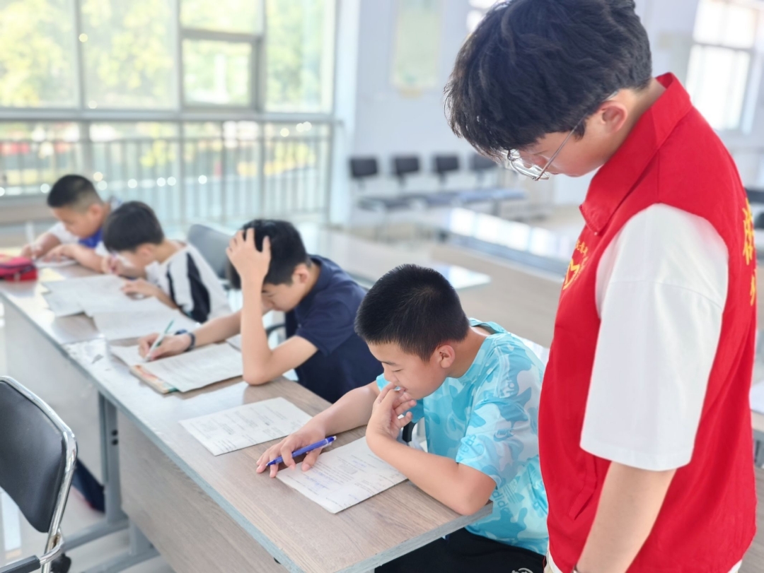 活动中,志愿者根据孩子们的学习情况,实施精准一对多辅导形式。活动现场,志愿者先布置出整洁的学习环境,引导小朋友自主完成作业,同时观察他们的解题思路与易错点。针对作业难题,志愿者以提问式互动启发联想,用生活案例类比讲解知识点,设置“提问奖励机制”鼓励思考。作业完成后,通过“思维导图拼图赛”分组建构知识框架,开展“口诀创编挑战”将公式规则改编为顺口溜,以游戏化方式助力知识系统化整合。此外,还开展“我是小歌手”“击鼓传花”等有趣的活动,让课堂充满趣味与活力。