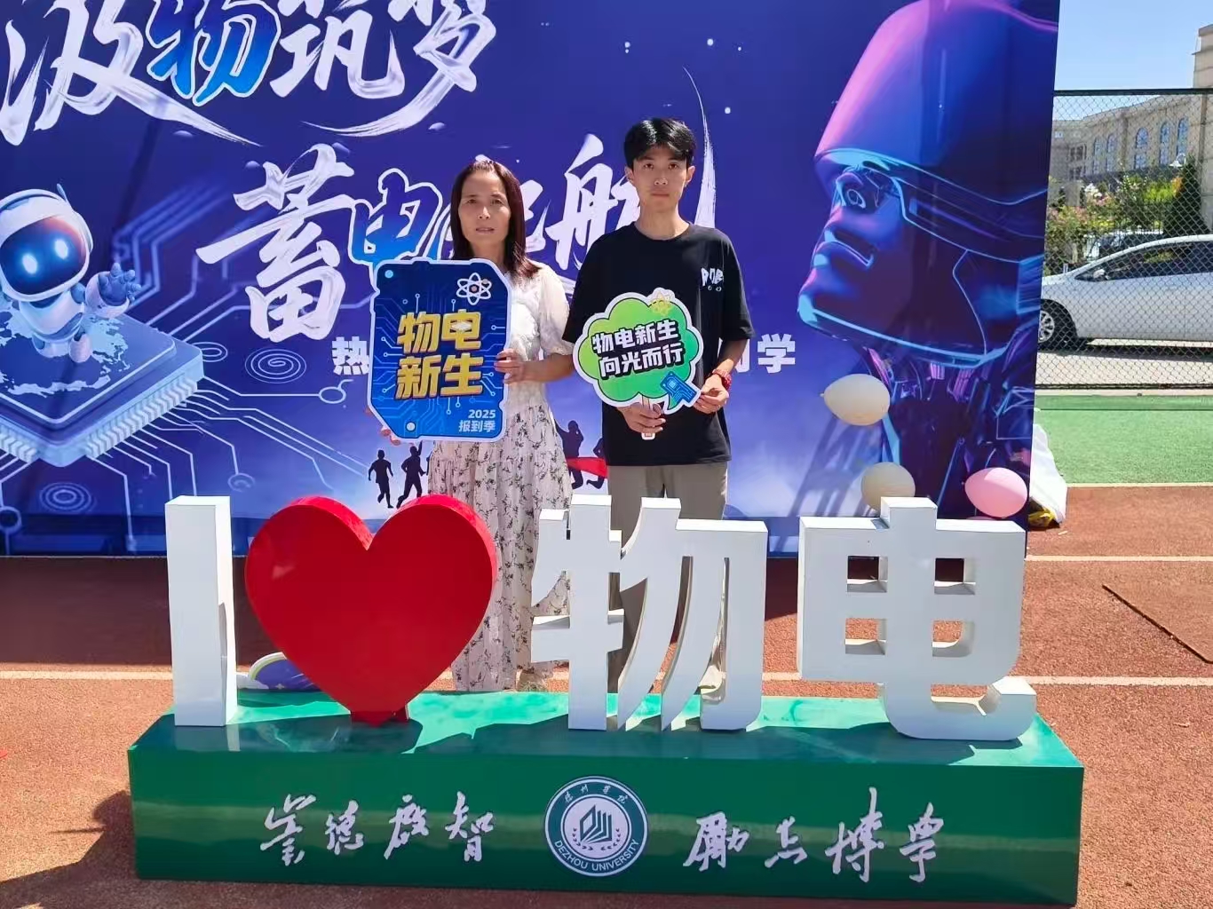 唐荣霞老师以双重身份到场:既是物电教师,也是一名2025级电子信息工程专业新生的母亲。她亲手把孩子交付给学院,眼中满是期许与信任——这场 "手递手" 的入校礼,把教育的重量和温度,都揉进了初秋的风里。