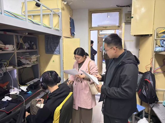 活动中,学院组成多个检查小组,深入各楼栋学生宿舍,重点围绕消防安全、用电安全、卫生状况等核心内容展开检查。在检查过程中,老师们仔细查看了宿舍内电路插座、电器使用情况,严厉禁止违规使用大功率电器、私拉乱接电线等行为,同时对宿舍内杂物堆积、卫生死角等问题提出整改建议。针对检查中发现的个别问题,当场向宿舍成员明确整改要求,并耐心讲解安全事故的危害性及防范要点。此外,领导老师还与同学们亲切交流,询问日常住宿需求和生活困难,叮嘱大家要提高安全警惕,自觉遵守宿舍管理规定。