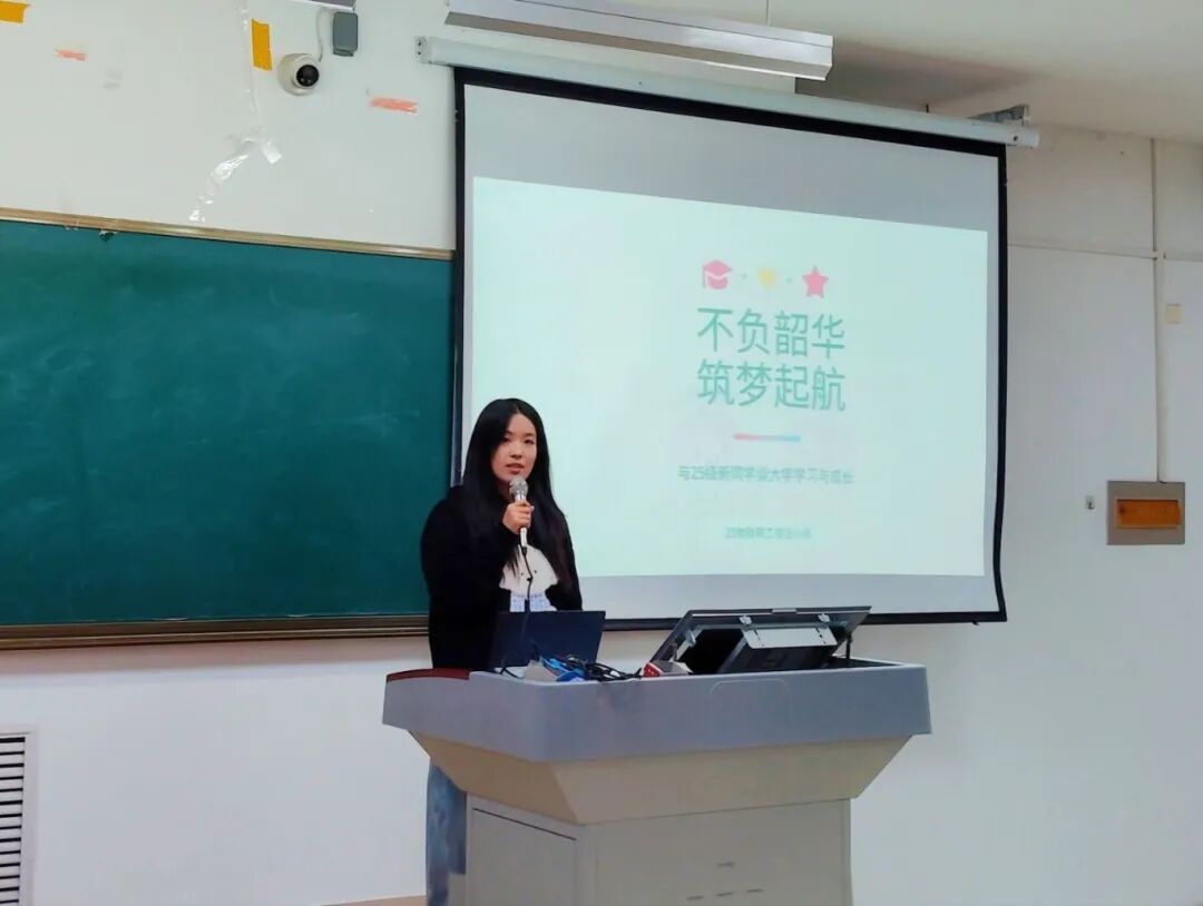 随后,侯馨凝结合自身专业第一的学业表现和丰富的竞赛经历,分享了外语学习、学科竞赛备赛的实用经验,强调了“以赛促学”和“多元发展”的重要性,鼓励同学们在夯实专业基础的同时,积极参与社团活动与社会实践,全面提升综合素养。现场新生认真聆听、积极互动,纷纷表示从中收获了针对性的学习方法,对大学生活有了更清晰的认知。