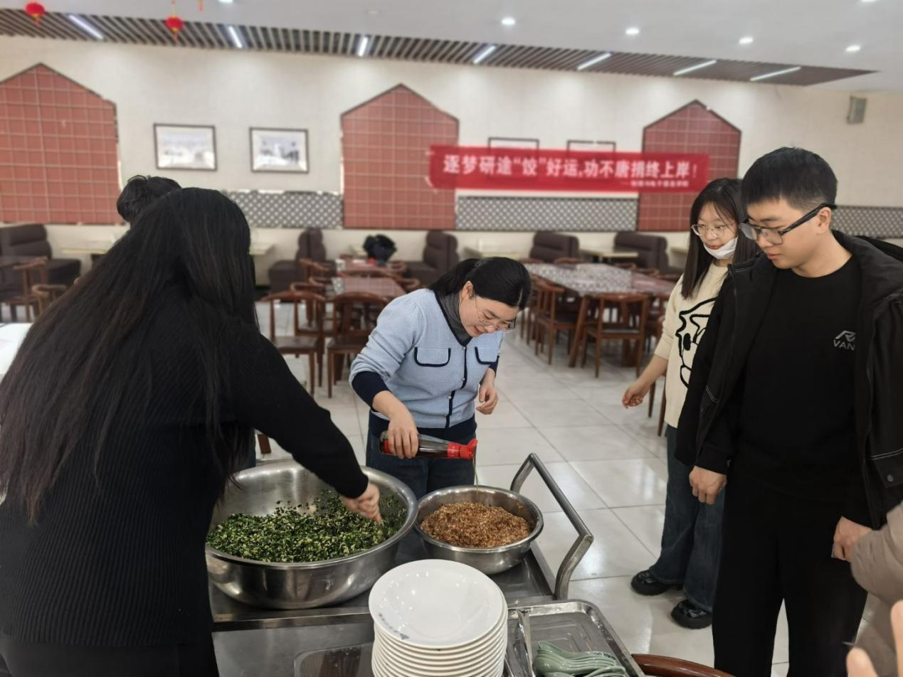 为缓解考研备考压力、传递学院关怀,增强考研学子的归属感与自信心,滚球买球的app官网于11月15日在教职工餐厅举办“逐梦研途‘饺’好运,功不唐捐终上岸”考研送温暖活动。学院党委书记申青林、副书记刘秀华、辅导员、教师代表及部分考研学子参与此次活动。