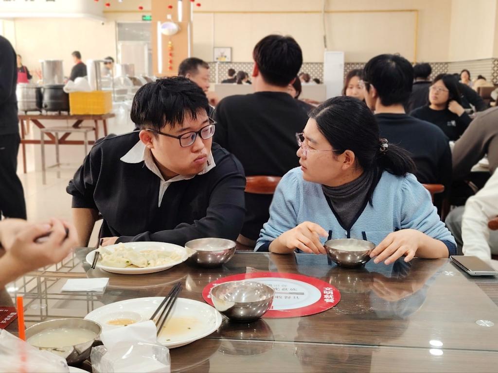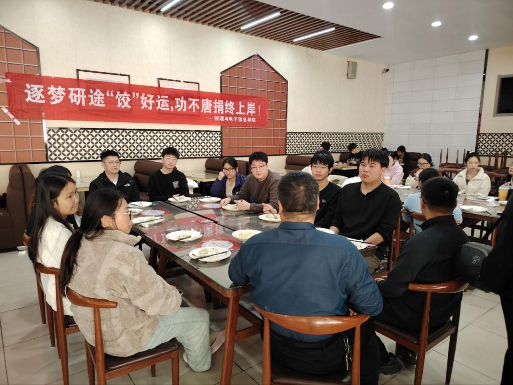 热气腾腾的饺子端上桌,一口热饺暖了胃,几句叮嘱定了心——这烟火气里的牵挂,是最扎实的“上岸”底气!老师们与考研学子围坐畅谈:既有老师分享的备考心态调节技巧,也有对学子未来学业规划的恳切建议,学弟学妹们也为学长学姐加油鼓劲,同学们也聊起备考里的小插曲与对研究生生活的憧憬,轻松的交流里,备考的紧绷感悄然消解,现场满是“家”的温馨。一句句真挚的祝福、一个个暖心的举动,与饺子的香气交织在一起,让这场冬日相聚不仅充满烟火温情,更凝聚起的守望相助,成为考研学子冲刺路上最动人的精神补给。