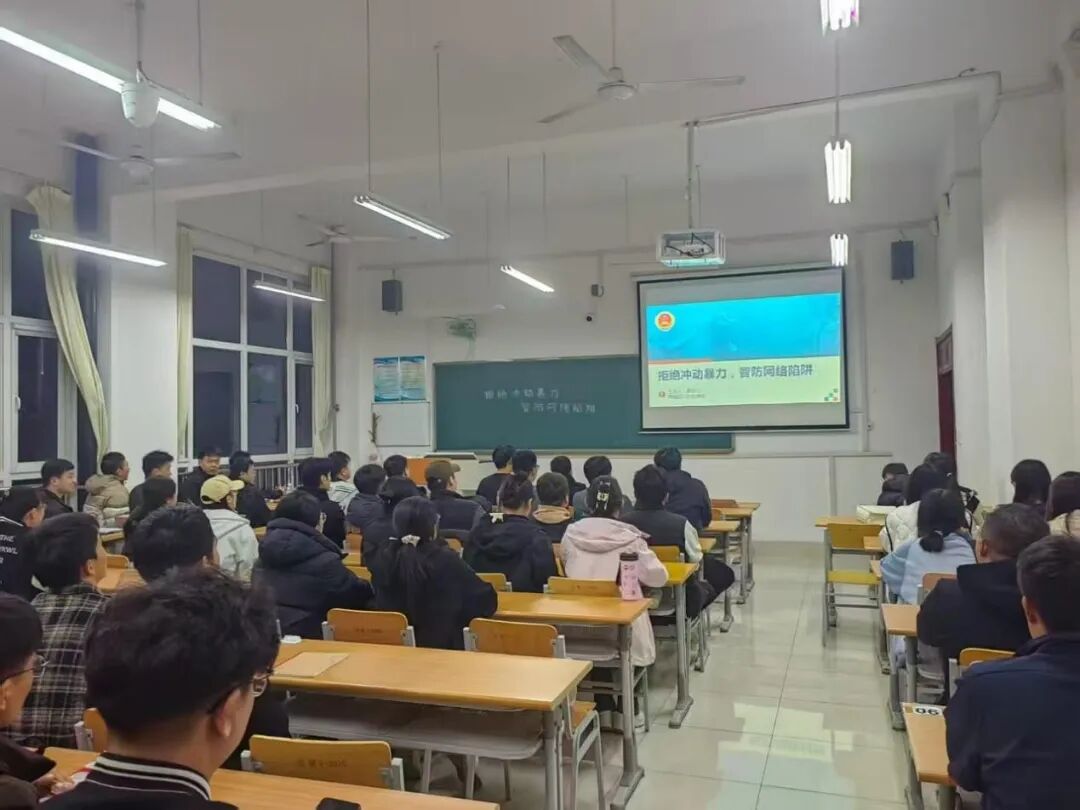 为切实提升全体学生自我保护意识与能力,10月28日,滚球买球的app官网联合德城区人民检察院,于明理楼216教室,围绕《拒绝冲动暴力,智防网络陷阱》主题,面向25级开展专项宣传工作,为新生成长保驾护航。