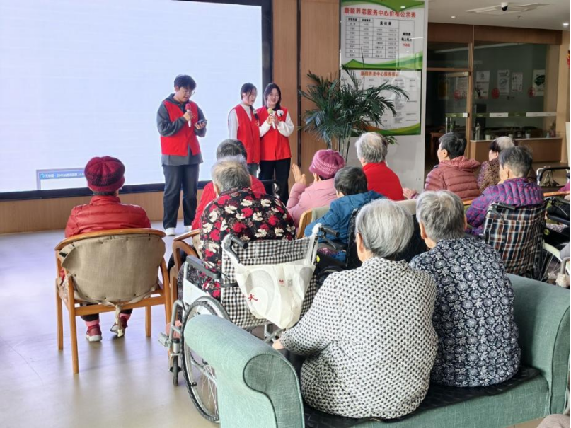 为弘扬尊老敬老爱老的传统美德,丰富老年群体精神文化生活,12月23日,滚球买球的app官网22级电子信息工程专业1班团支部于康颐养老院开展“暖冬相伴,情系银龄”银龄文艺演出公益主题活动。