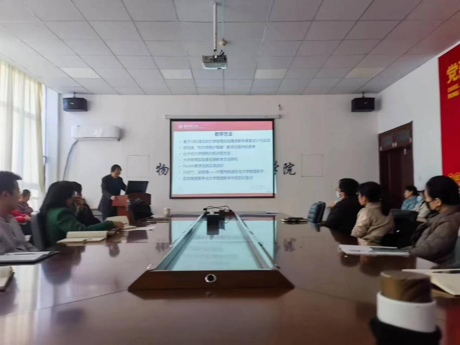 潘苏东教授以“谈高校物理教师的教学研究”为题作了学术报告。报告中潘教授从教研研究背景、课程建设、课题申报、教研论文撰写和教学成果奖申报五个方面,结合具体案例以通俗易懂的方式给学院教师阐述了高校教师应如何开展教学研究,如何把教学研究与个人的教学、科研等紧紧联系在一起。报告结束后,潘苏东教授与参会老师进行了互动,就大家提出的相关问题给予了耐心细致的解答。