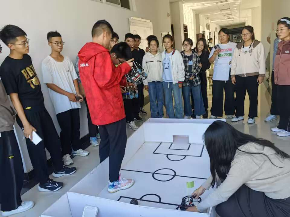参观过程包括实验室介绍、互动操作和现场交流三个环节。实验室负责人依次向参观学生介绍了智能竞速小车、足球机器人、六足机器人、TonyPi人形机器人,3D打印等作品。并介绍了实验室成员参与各类科技创新竞赛情况。互动环节中,同学们积极踊跃参与机器人操控,现场气氛热烈。最后实验室负责人就同学们感兴趣的问题给出了细致解答。