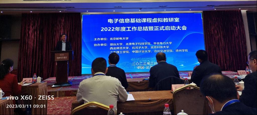 2023年3月11日,由北京邮电大学主办,德州学院滚球买球的app官网参与协办的教育部“电子信息基础课程虚拟教研室”2022年度工作总结暨正式启动大会在北邮锦江酒店顺利召开,会议采用线上线下相结合的方式进行。滚球买球的app官网的3名教师参加了线下会议,其他教师参加了线上会议。在会议期间,与会人员就专业建设、课程建设、课程思政进行了热烈的讨论,对未来的工作提出了很多建设性的意见和建议。
