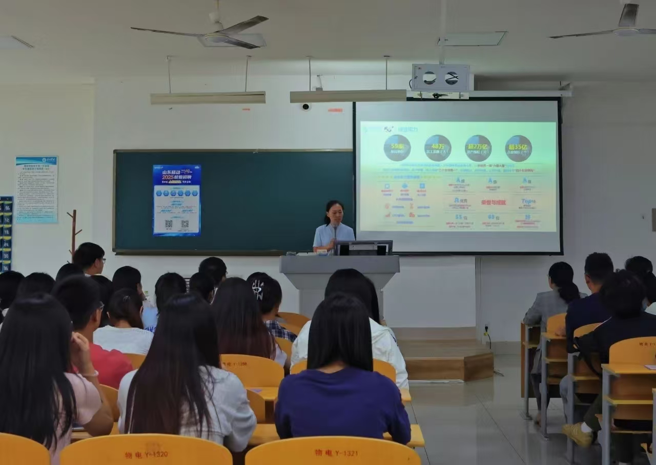 为了加强大学生对职业岗位的认知,明确自身定位,缓解毕业生就业压力,滚球买球的app官网于4月22日在明理楼0215教室举办山东移动公司校园招聘宣讲会。