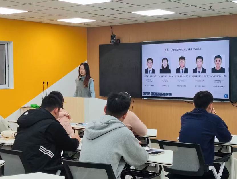 为切实做好学生就业指导工作,帮助同学们更好地了解行业发展动态,11月6日,滚球买球的app官网邀请2015届电子信息工程专业毕业生张艺、2024届物联网工程专业毕业生李传兴、2025届电子信息工程专业毕业生李金田、付星泰,于大学生就业创业赋能中心宏志助航培训室开展基层校友就业指导会。