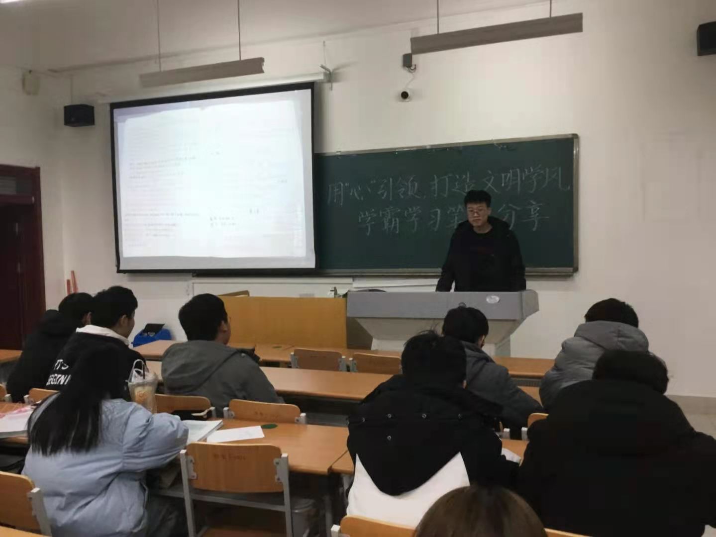 活动开始,讲解人马兴豪同学通过PPT的形式讲解分析如何记笔记以及记录笔记的重要性,随后展示同学的优秀学习笔记,同学们相互传阅学习,积极讨论,互相交流记笔记的心得和技巧。同学们表示,“水滴石穿”并非水的力量大,而在于功夫深。没有一字一句的积累,难以在求学之路上取得真经。无论是课上,还是课下,持之以恒地练习、记忆,是取得突出成就的必备素质。