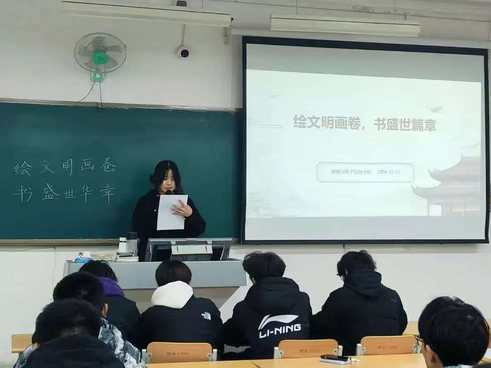 为深化大学生对文明内涵的认知,引导他们在学习、生活和职业发展中自觉践行文明规范,激发创造力和表达能力,12月15日,滚球买球的app官网在明理楼117教室举办“绘文明画卷,书盛世华章”主题活动。