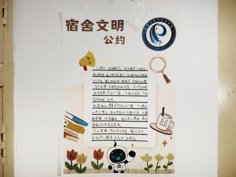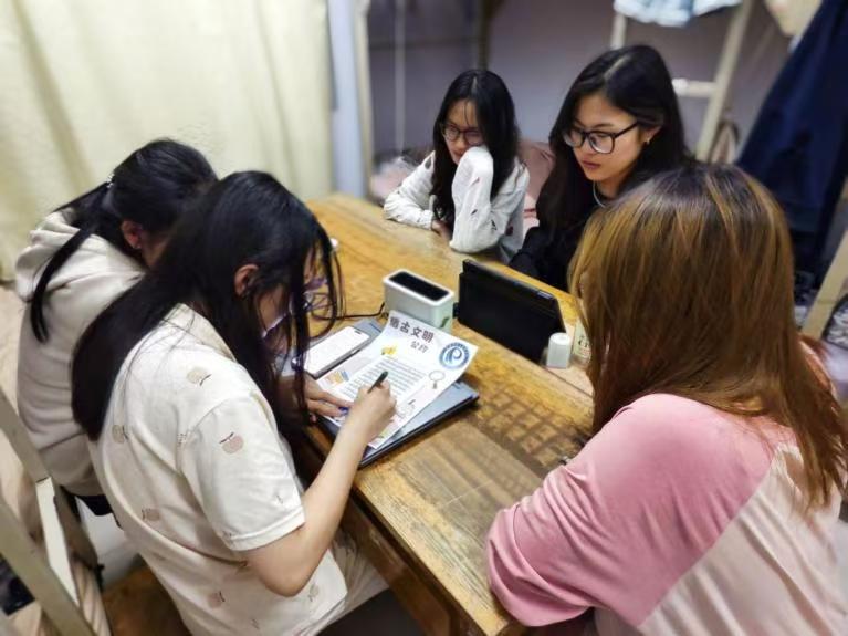 宿舍文明公约活动中,X舍友们带领各宿舍成员聚焦生活细节,就卫生值日、作息管理、物品收纳、人际交往等展开讨论,形成“每日轮流值日保持整洁”“23点后静音不扰民”等兼具实用性的条款,既规范生活秩序,又助力营造温馨共处氛围。