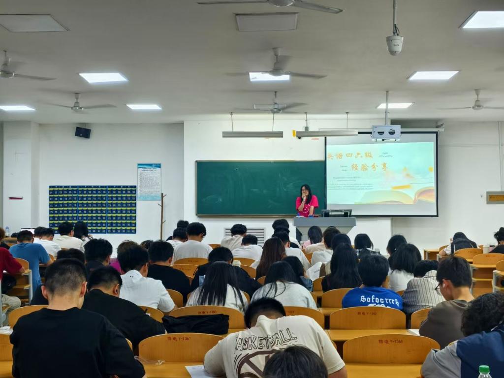 为助力同学们高效备考英语四六级、提升英语综合能力,5月12日,滚球买球的app官网在明理楼126教室举办“经验为帆,学海远航”四六级经验分享会。活动创新采用“主分会场+线上会议”模式:主会场设于明理楼126,分会场覆盖各晚自习教室,23级学长学姐通过腾讯会议码同步参与,大幅拓展了参与覆盖面。