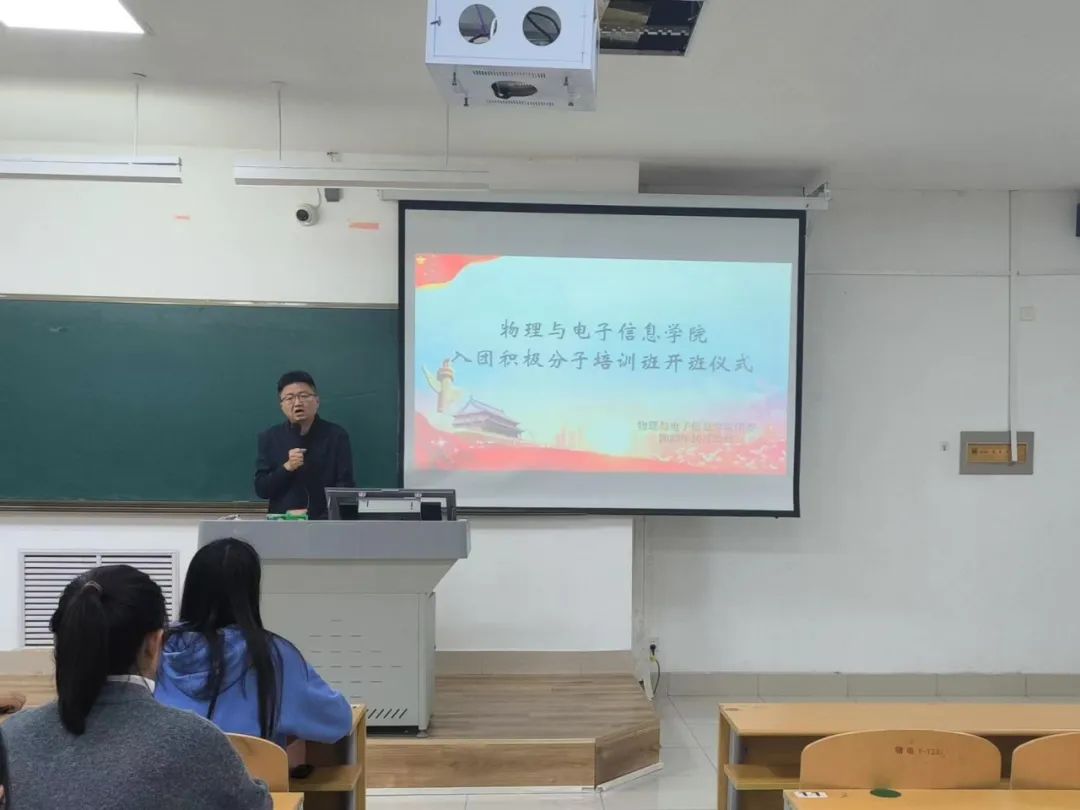 开班仪式上,赵老师首先从“为什么要入团”这个问题出发引出同学们的思考,耐心聆听了解同学们入团的目的和动机,并教导同学们要以团员的行为标准严格要求自己,在之后的发展过程中继续保持、毫不松懈。随后,赵老师对发展团员的流程和本次入团积极分子培训班计划和要求进行了详细介绍,并鼓励同学们端正学习态度,以本次培训班为契机沉下心来学理论、长才干、做贡献。培训过程中,赵老师带领入团积极分子学习了共青团的诞生及发展历程,并对团旗、团徽、团歌等团基础知识进行了解读,并通过两个关于中国共青团历史的视频,生动形象地为学员们再现了那段峥嵘岁月。培训中,赵老师呼吁学员们要敢担当、能吃苦、肯奋斗,积极参加青年工作,努力成为青年先锋。