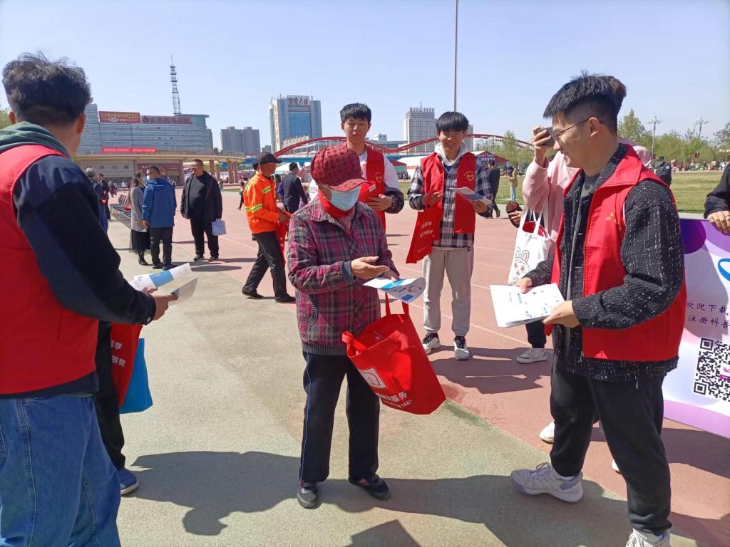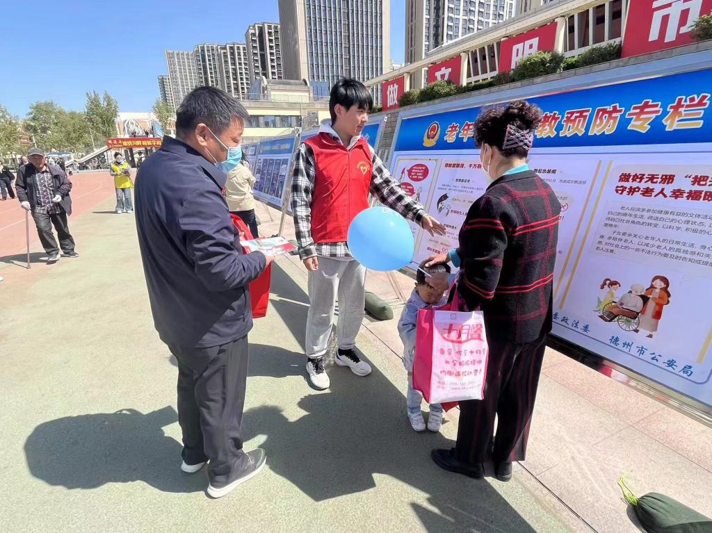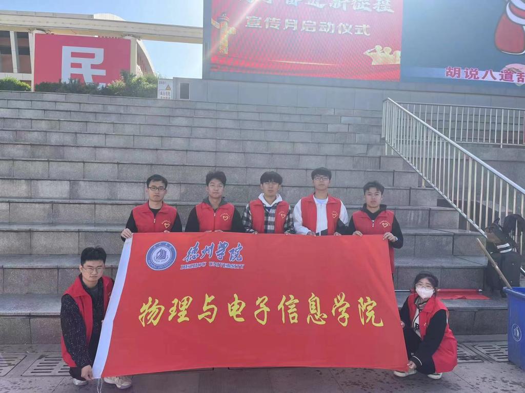 4月16日上午,在德州市城市中心广场物理与电子学院的8位学生志愿者参与服务了德州市“齐心协力反邪教 携手奋进新征程”宣传月启动仪式,充分彰显了当代大学生的青春风采。