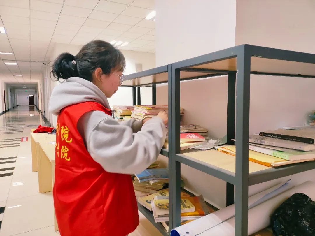 志愿者们分工明确,各司其职,对教室地面,桌洞,桌面,讲台,黑板等进行了彻底的清扫,同时将修读点的书架也进行了整理。