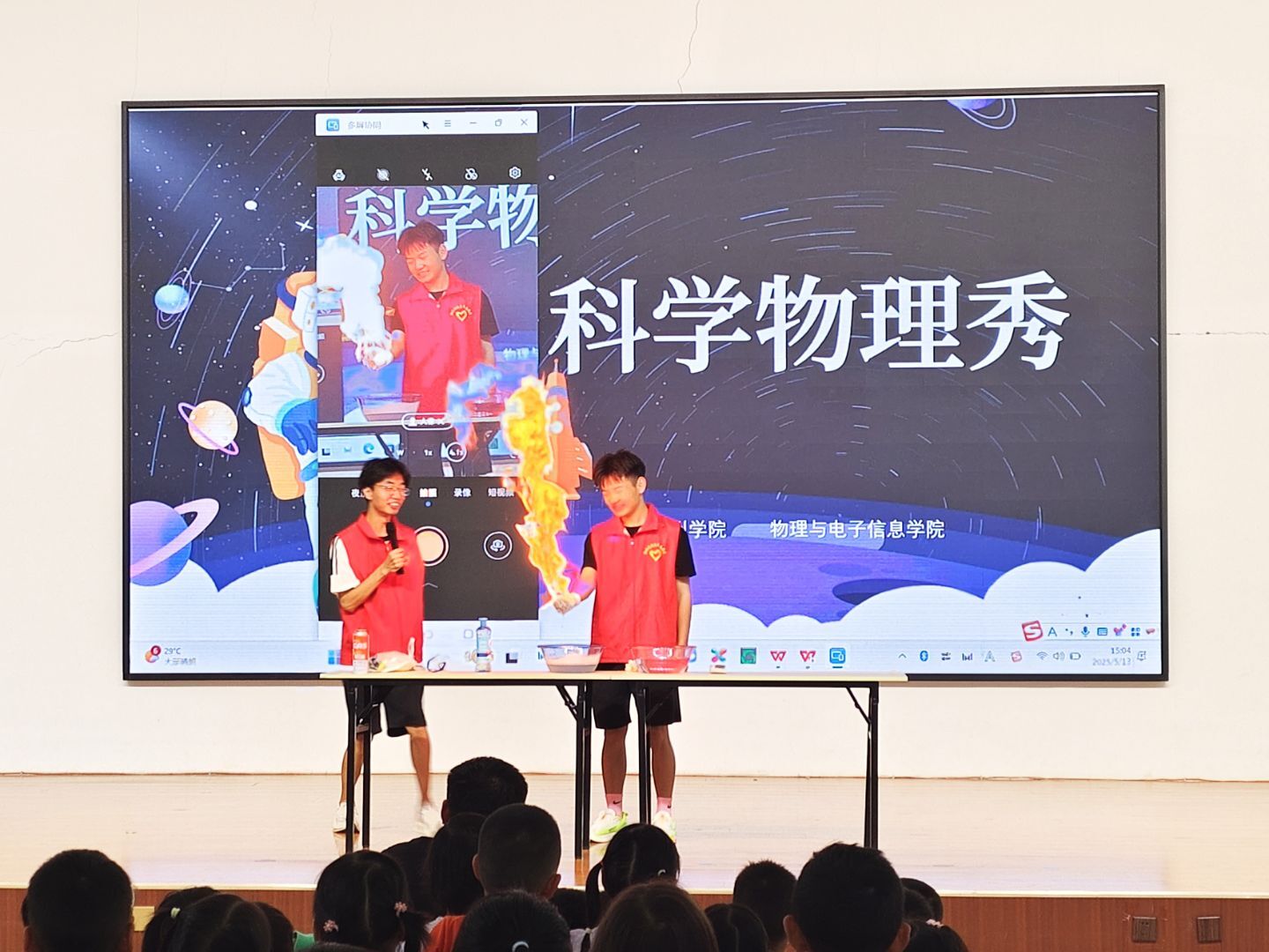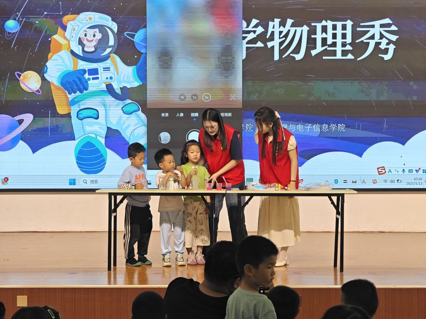 为激发少年儿童对科学的探索热情,培养创新思维与实践能力,5月13日,物电学院24级电子信息工程1班级团支部“星光”科普志愿服务队在妇女儿童中心开展“科学物理秀”星光科普活动,通过趣味实验带孩子们解锁物理世界的奇妙密码。