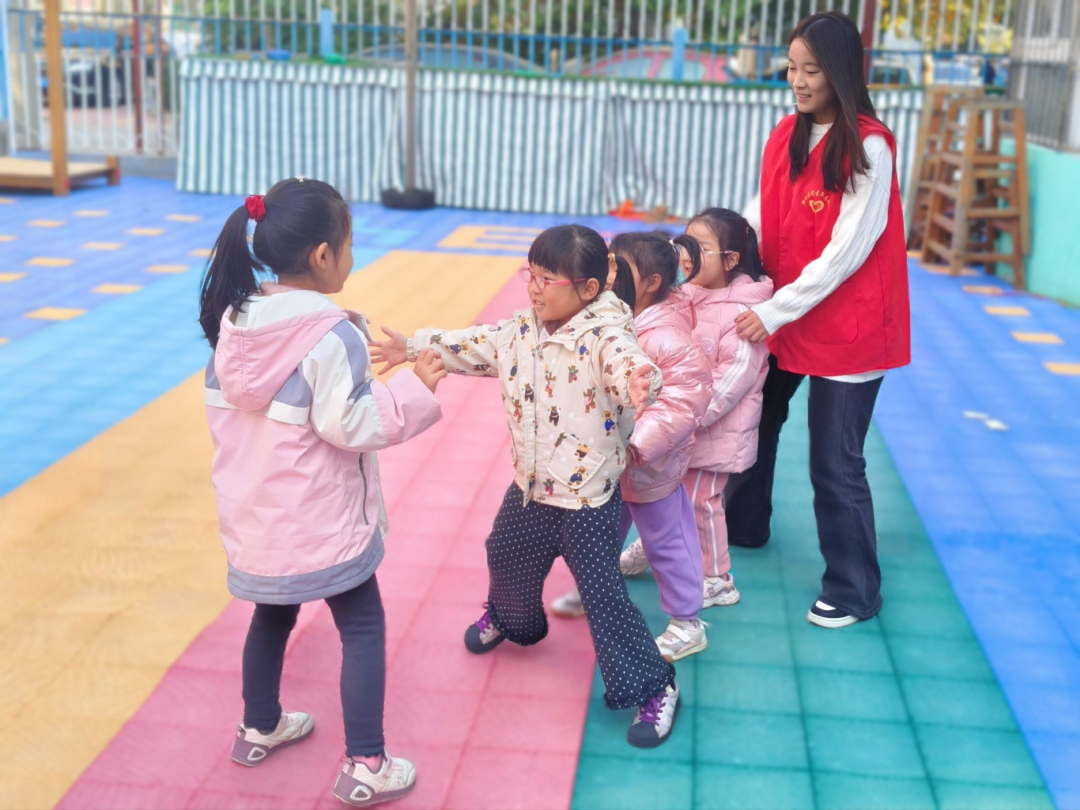 活动前期,志愿者团队提前规划流程,精心筹备材料,确保活动顺利开展,活动现场,志愿者们结合孩子们的特点,量身打造了各种安全益智的体育项目。“丢手绢”“跳绳”两项趣味运动依次开展,孩子们在运动中充分展现活力,在跑动与互动中培养了规则意识与反应能力,提升了身体协调性与节奏感。与此同时,“老鹰抓小鸡”运动环节热闹开启,孩子们在攻守追逐中锻炼团队协作意识与身体灵敏性。志愿者们全程守护孩子们的安全,让孩子们在运动中收获自信,在合作中感受快乐。