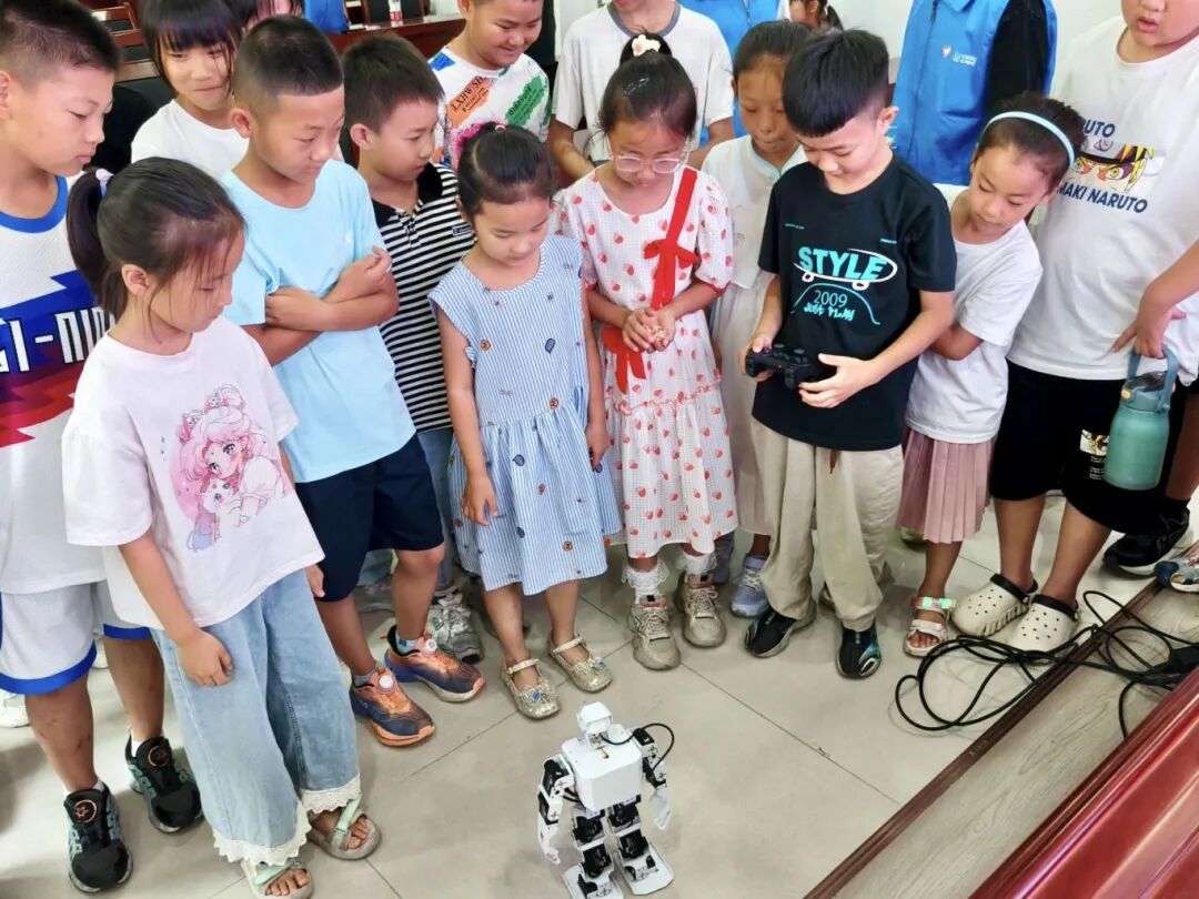 最后,我们为大家展示了学院自主研发的特色机器人。机器人能完成各类复杂动作与。当机器人完成这些高难度动作时,小朋友发出惊叹声与热烈掌声。为了满足他们的好奇心,志愿者让每位小朋友都进行了亲自动手操控机器人,此环节不仅让孩子们感受到科技的魅力,也在他们心中埋下了热爱科技的种子。