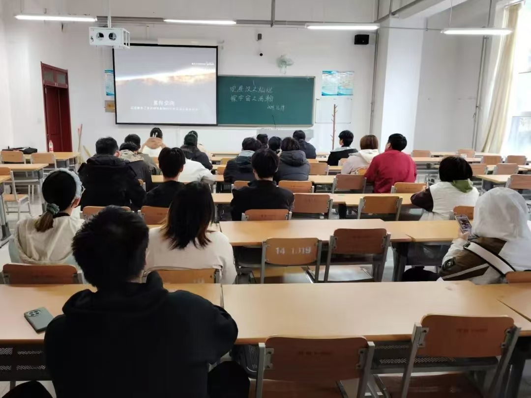 为向同学们科普天文知识,激发同学们对天文知识的兴趣,滚球买球的app官网天文爱好者协会于11月19日在明理楼118教室开展“观星汉之灿烂,探宇宙之浩瀚”知识讲座活动。
