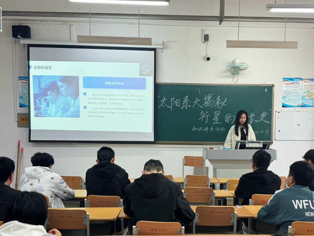 为普及天文知识,激发青年学子对宇宙探索的热情,滚球买球的app官网天文爱好者协会于4月8日在明理楼118教室成功举办“太阳系大揭秘,行星的成长史”主题科普活动。