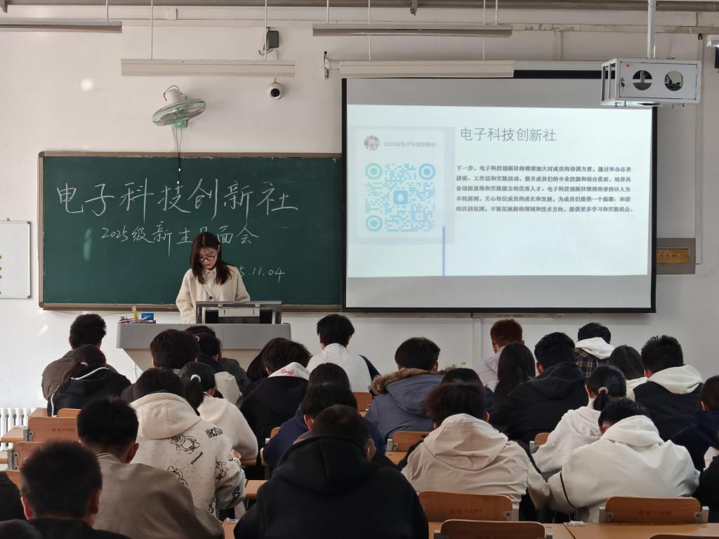 为了增加新生们对电子科技创新社的认识,点燃对电子科技的探索热情,电子科技创新社2025级新生见面会于11月4日在明理楼117教室举行。