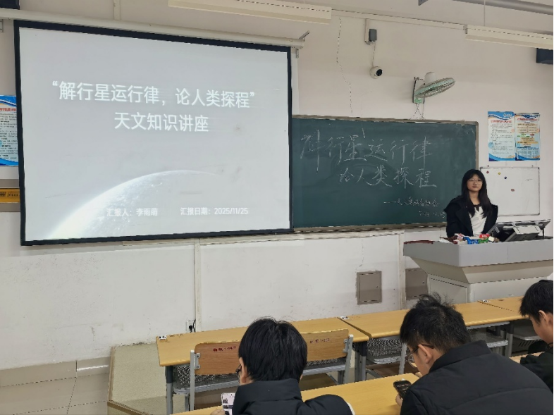 为拓宽学生天文知识视野,培育科学探索精神,激发对宇宙星辰的探索热忱,11月29日,滚球买球的app官网天文爱好者协会在明理楼118教室开展“解行星运行律,论人类探程”主题讲座活动。