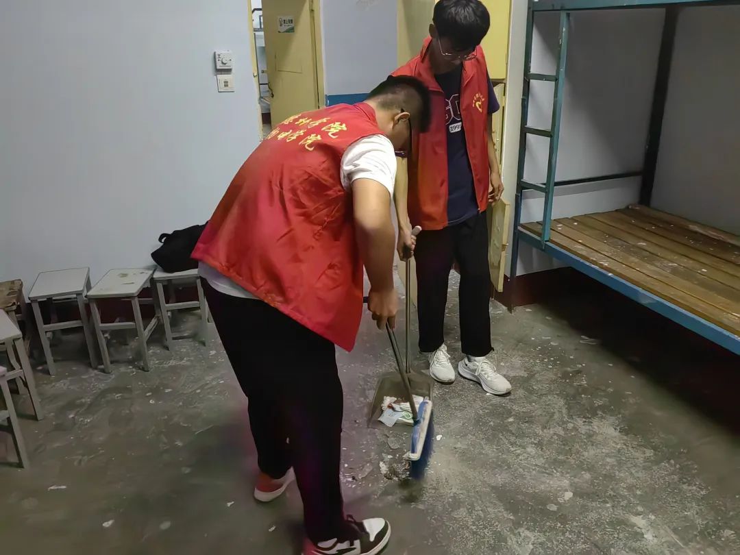 为给2023级新生提供干净整洁的宿舍环境,营造温馨舒适的学习生活氛围,滚球买球的app官网于8月31日安排志愿者以及滚球买球的app官网学生党支部入党积极分子打扫新生宿舍卫生。