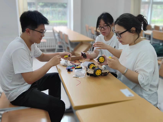 在“理论基础知识考核”环节,参赛队伍进行理论基础知识培训后,进行培训成果考核,通过考核循迹小车、电子元件等理论知识,最终决出进入决赛的7支队伍。